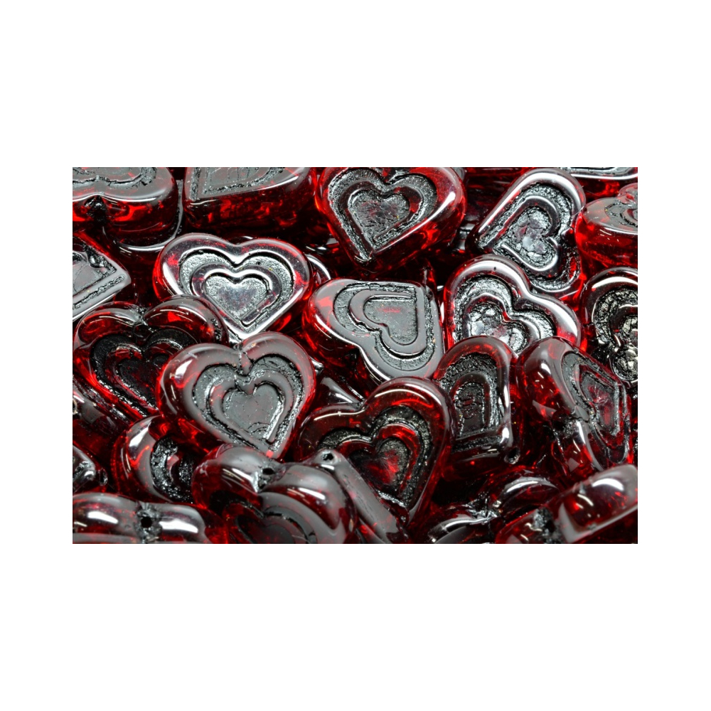 Heart In Heart Beads 14x16 mm – Skleněné mačkané korálky s dvojitým srdcem od Rutkovský