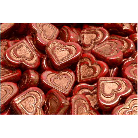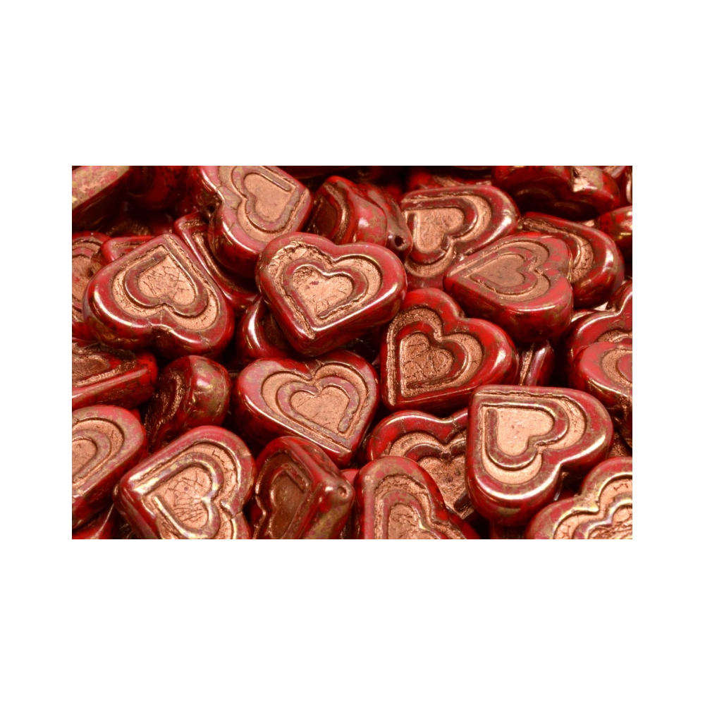 Heart In Heart Beads 14x16 mm – Skleněné mačkané korálky s dvojitým srdcem od Rutkovský