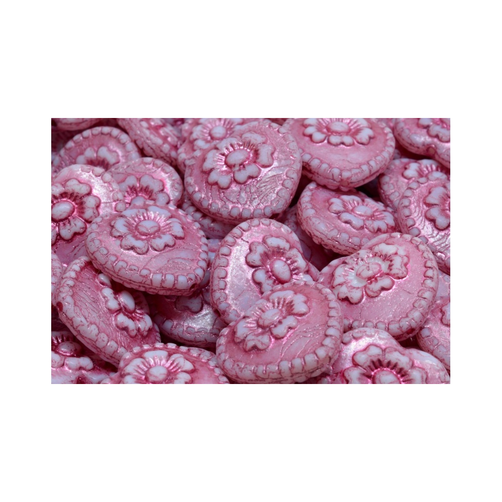 Skleněné mačkané korálky Heart Beads With Rose 17x17mm – Romantická elegance českého sklářství