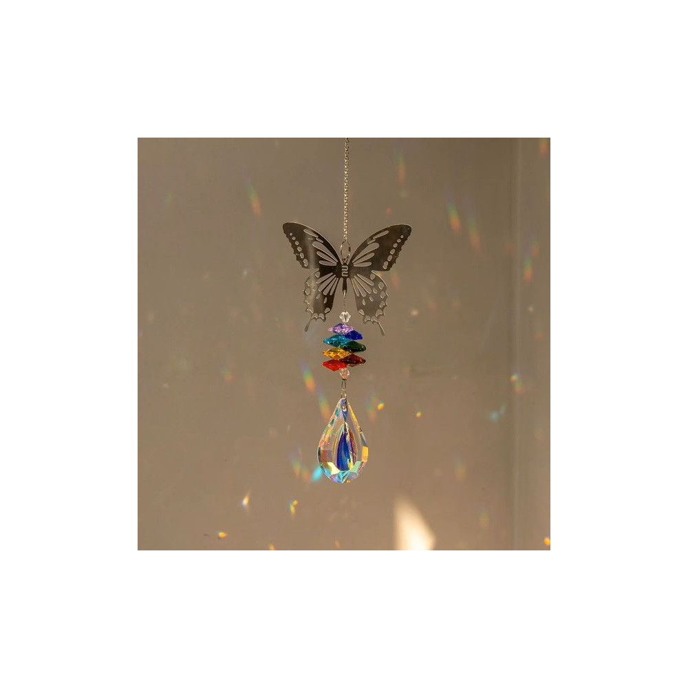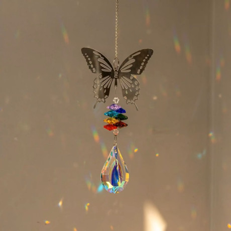 Kouzelný lapač slunce s motivem motýla. Kombinace uměleckého kovu a třpytivých skleněných křišťálů vytváří úchvatnou hru světel. Ideální dekorace do oken, na terasu či do zahrady