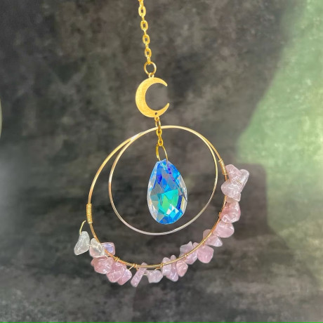 Nechte se unést hrou světla, třpytem krystalů a jemnou energií kamenů. Váš domov se promění v oázu klidu a harmonie s tímto ručně vyrobeným lapačem slunce, který bude denně přitahovat pozitivní energii a inspiraci do vašeho života.