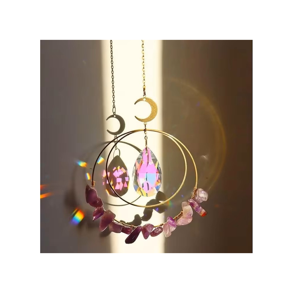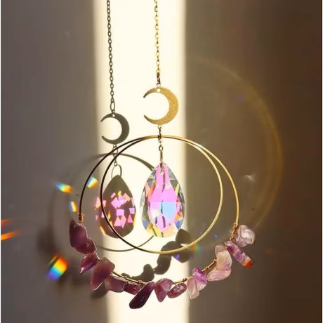 Nechte se unést hrou světla, třpytem krystalů a jemnou energií kamenů. Váš domov se promění v oázu klidu a harmonie s tímto ručně vyrobeným lapačem slunce, který bude denně přitahovat pozitivní energii a inspiraci do vašeho života.