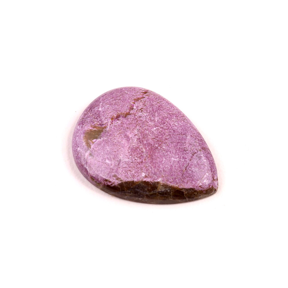 Kabošon z přírodního kamene Stichtit je fascinující příklad minerálu s výraznou fialovou barvou, která vzniká díky přirozenému složení magnézia a chromu. Tento kámen, často nalezený v kombinaci s dalšími minerály jako je serpentin, vytváří působivý vizuální kontrast s hlubokými odstíny purpurové až fialové a jemně zelenými či bílými žilkami. Stichtit je minerál s historickým původem sahajícím do Tasmánie, kde byl poprvé objeven koncem 19. století a pojmenován podle Williama Stichty, jednoho z významných geologů té doby.