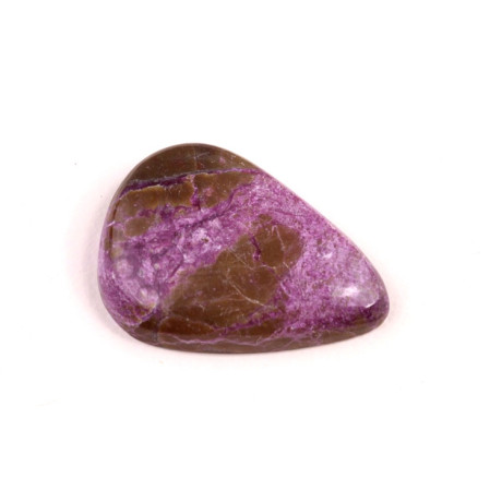 Kabošon z přírodního kamene Stichtit je fascinující příklad minerálu s výraznou fialovou barvou, která vzniká díky přirozenému složení magnézia a chromu. Tento kámen, často nalezený v kombinaci s dalšími minerály jako je serpentin, vytváří působivý vizuální kontrast s hlubokými odstíny purpurové až fialové a jemně zelenými či bílými žilkami. Stichtit je minerál s historickým původem sahajícím do Tasmánie, kde byl poprvé objeven koncem 19. století a pojmenován podle Williama Stichty, jednoho z významných geologů té doby.