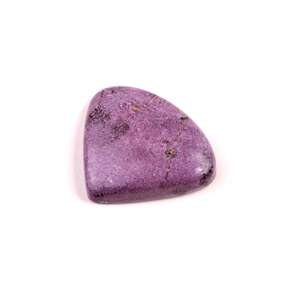 Kabošon z přírodního kamene Stichtit je fascinující příklad minerálu s výraznou fialovou barvou, která vzniká díky přirozenému složení magnézia a chromu. Tento kámen, často nalezený v kombinaci s dalšími minerály jako je serpentin, vytváří působivý vizuální kontrast s hlubokými odstíny purpurové až fialové a jemně zelenými či bílými žilkami. Stichtit je minerál s historickým původem sahajícím do Tasmánie, kde byl poprvé objeven koncem 19. století a pojmenován podle Williama Stichty, jednoho z významných geologů té doby.