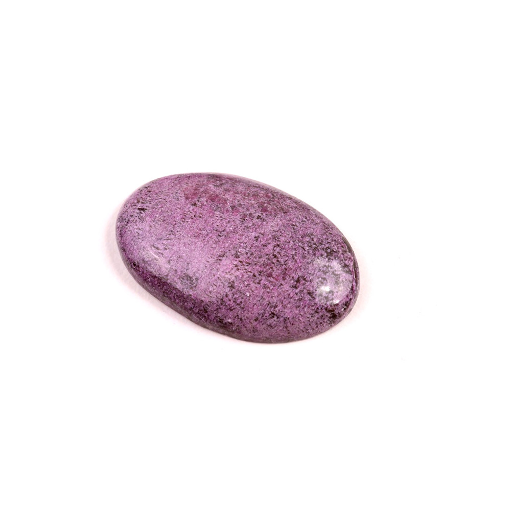 Kabošon z přírodního kamene Stichtit je fascinující příklad minerálu s výraznou fialovou barvou, která vzniká díky přirozenému složení magnézia a chromu. Tento kámen, často nalezený v kombinaci s dalšími minerály jako je serpentin, vytváří působivý vizuální kontrast s hlubokými odstíny purpurové až fialové a jemně zelenými či bílými žilkami. Stichtit je minerál s historickým původem sahajícím do Tasmánie, kde byl poprvé objeven koncem 19. století a pojmenován podle Williama Stichty, jednoho z významných geologů té doby.