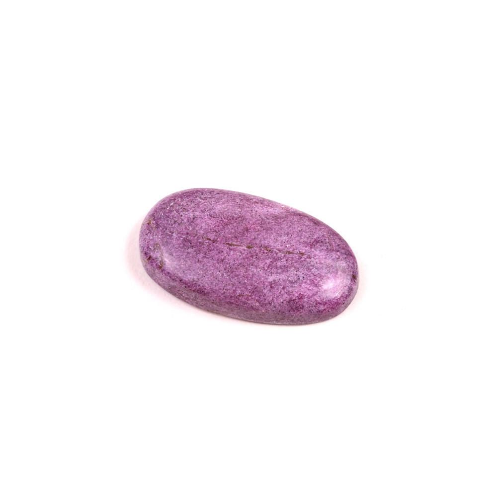 Kabošon z přírodního kamene Stichtit je fascinující příklad minerálu s výraznou fialovou barvou, která vzniká díky přirozenému složení magnézia a chromu. Tento kámen, často nalezený v kombinaci s dalšími minerály jako je serpentin, vytváří působivý vizuální kontrast s hlubokými odstíny purpurové až fialové a jemně zelenými či bílými žilkami. Stichtit je minerál s historickým původem sahajícím do Tasmánie, kde byl poprvé objeven koncem 19. století a pojmenován podle Williama Stichty, jednoho z významných geologů té doby.