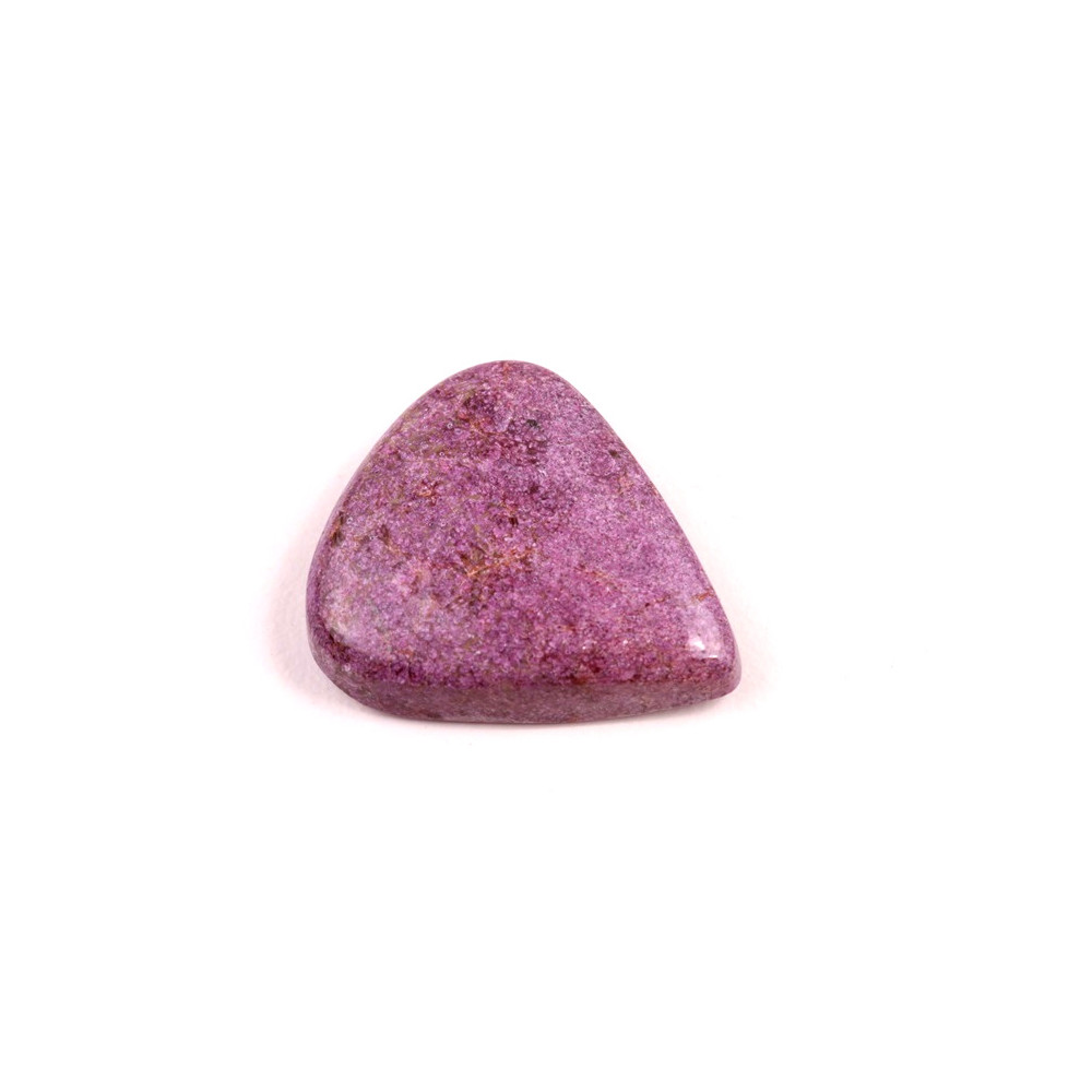Kabošon z přírodního kamene Stichtit je fascinující příklad minerálu s výraznou fialovou barvou, která vzniká díky přirozenému složení magnézia a chromu. Tento kámen, často nalezený v kombinaci s dalšími minerály jako je serpentin, vytváří působivý vizuální kontrast s hlubokými odstíny purpurové až fialové a jemně zelenými či bílými žilkami. Stichtit je minerál s historickým původem sahajícím do Tasmánie, kde byl poprvé objeven koncem 19. století a pojmenován podle Williama Stichty, jednoho z významných geologů té doby.