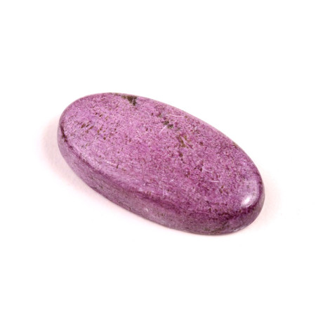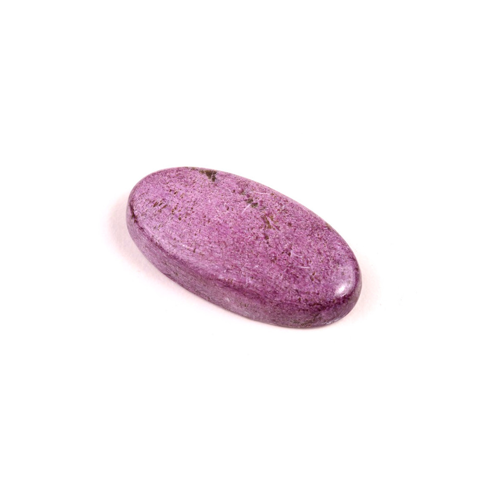 Kabošon z přírodního kamene Stichtit je fascinující příklad minerálu s výraznou fialovou barvou, která vzniká díky přirozenému složení magnézia a chromu. Tento kámen, často nalezený v kombinaci s dalšími minerály jako je serpentin, vytváří působivý vizuální kontrast s hlubokými odstíny purpurové až fialové a jemně zelenými či bílými žilkami. Stichtit je minerál s historickým původem sahajícím do Tasmánie, kde byl poprvé objeven koncem 19. století a pojmenován podle Williama Stichty, jednoho z významných geologů té doby.