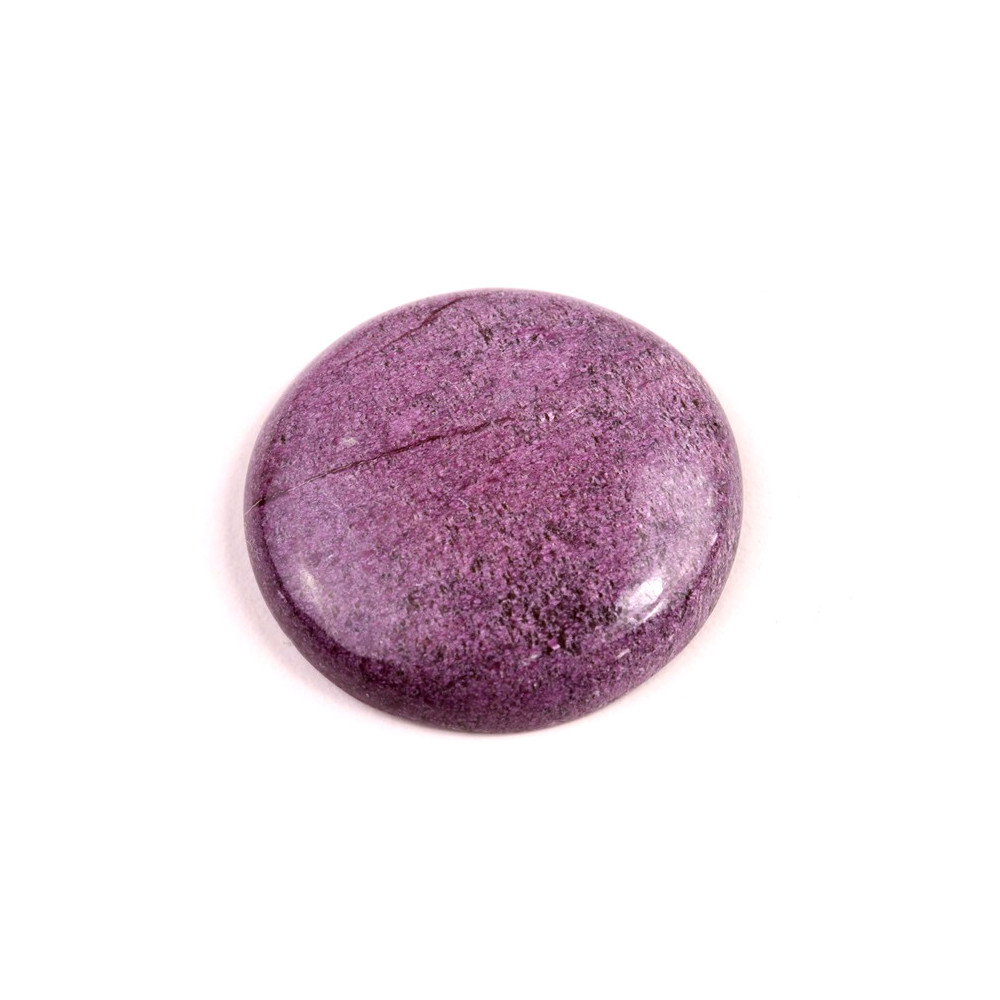 Kabošon z přírodního kamene Stichtit je fascinující příklad minerálu s výraznou fialovou barvou, která vzniká díky přirozenému složení magnézia a chromu. Tento kámen, často nalezený v kombinaci s dalšími minerály jako je serpentin, vytváří působivý vizuální kontrast s hlubokými odstíny purpurové až fialové a jemně zelenými či bílými žilkami. Stichtit je minerál s historickým původem sahajícím do Tasmánie, kde byl poprvé objeven koncem 19. století a pojmenován podle Williama Stichty, jednoho z významných geologů té doby.