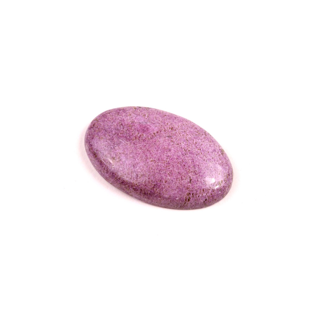 Kabošon z přírodního kamene Stichtit je fascinující příklad minerálu s výraznou fialovou barvou, která vzniká díky přirozenému složení magnézia a chromu. Tento kámen, často nalezený v kombinaci s dalšími minerály jako je serpentin, vytváří působivý vizuální kontrast s hlubokými odstíny purpurové až fialové a jemně zelenými či bílými žilkami. Stichtit je minerál s historickým původem sahajícím do Tasmánie, kde byl poprvé objeven koncem 19. století a pojmenován podle Williama Stichty, jednoho z významných geologů té doby.