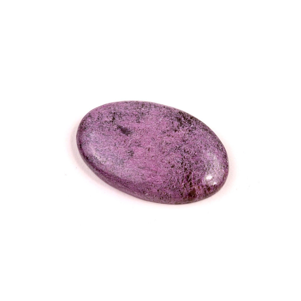 Kabošon z přírodního kamene Stichtit je fascinující příklad minerálu s výraznou fialovou barvou, která vzniká díky přirozenému složení magnézia a chromu. Tento kámen, často nalezený v kombinaci s dalšími minerály jako je serpentin, vytváří působivý vizuální kontrast s hlubokými odstíny purpurové až fialové a jemně zelenými či bílými žilkami. Stichtit je minerál s historickým původem sahajícím do Tasmánie, kde byl poprvé objeven koncem 19. století a pojmenován podle Williama Stichty, jednoho z významných geologů té doby.