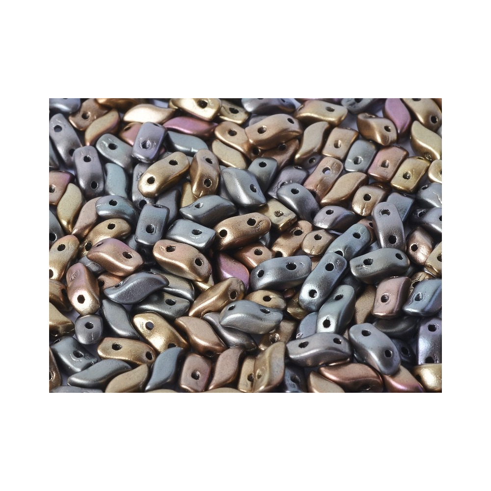 Storm Duo korálky představují unikátní tvar, který je ideální pro tvůrce šperků hledající inovativní a vizuálně zajímavé komponenty. Tyto korálky mají velikost 3 x 7 mm a jsou charakteristické svým mírně prohnutým oválným tvarem, který připomíná kámen rozvířený ve vodní vířivce. Dva otvory jsou umístěny na obou koncích korálku, což umožňuje snadné spojení s dalšími korálky a vytváření komplexních vzorů s hladkým přechodem.