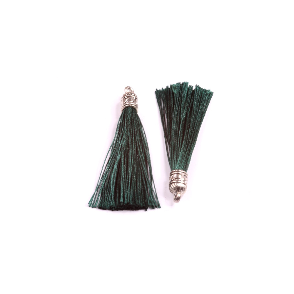 Elegantní střapec s kovovým kaplíkem ve starostříbrné barvě pro zdobení šperků, oděvů a dekorací. Na konci je připevněn ozdobný kovový kaplík s očkem pro uchycení.