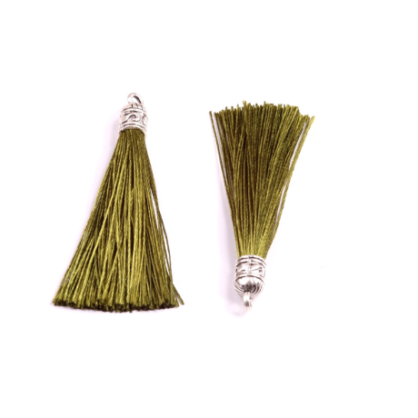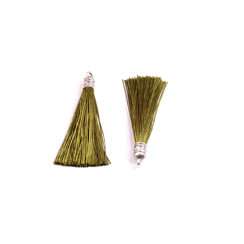 Elegantní střapec s kovovým kaplíkem ve starostříbrné barvě pro zdobení šperků, oděvů a dekorací. Na konci je připevněn ozdobný kovový kaplík s očkem pro uchycení.