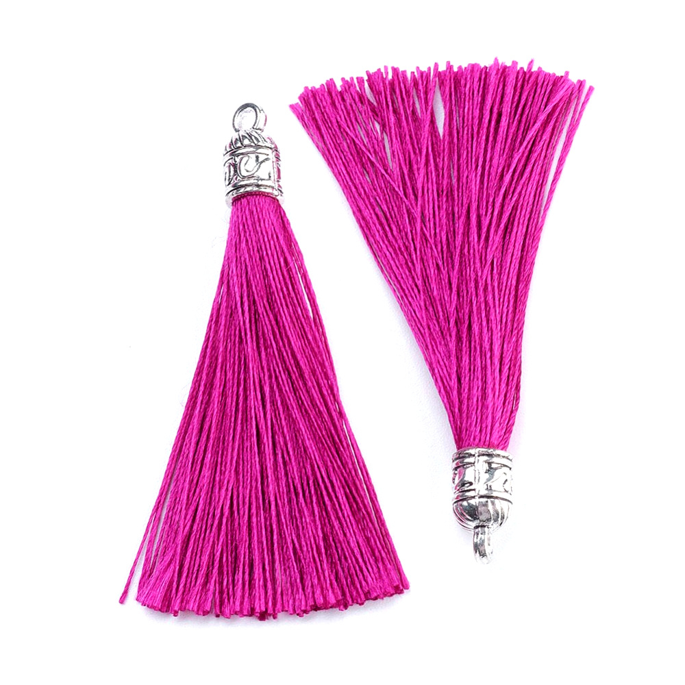 Elegantní střapec s kovovým kaplíkem ve starostříbrné barvě pro zdobení šperků, oděvů a dekorací. Na konci je připevněn ozdobný kovový kaplík s očkem pro uchycení.