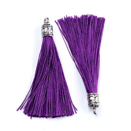 Elegantní střapec s kovovým kaplíkem ve starostříbrné barvě pro zdobení šperků, oděvů a dekorací. Na konci je připevněn ozdobný kovový kaplík s očkem pro uchycení.