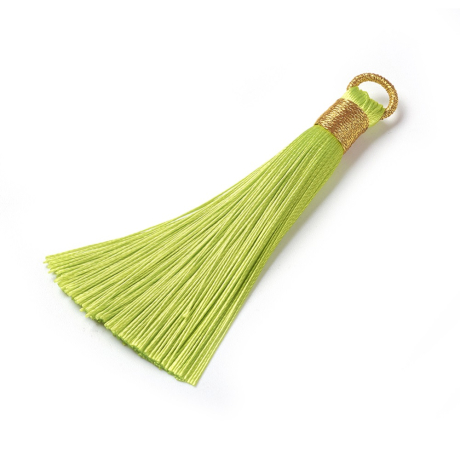 Střapec z nylonových šňůr je ideální doplněk pro vaše šperky. Je vyroben z kvalitních materiálů. Střapec je dlouhý přibližně 6,5 cm. Je opatřen zlatým očkem, které umožňuje snadné uchycení na náhrdelník nebo náušnice. Střapec je na konci ozdobně stažen nití ve zlaté barvě.