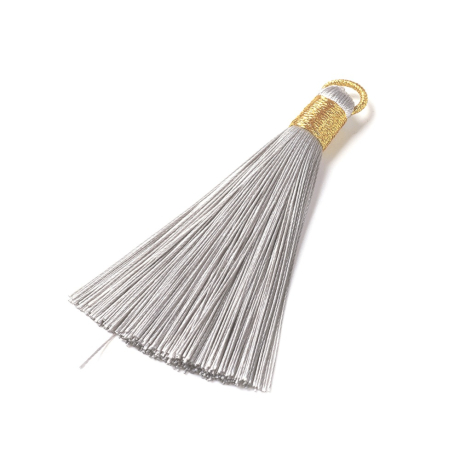 Střapec z nylonových šňůr je ideální doplněk pro vaše šperky. Je vyroben z kvalitních materiálů. Střapec je dlouhý přibližně 6,5 cm. Je opatřen zlatým očkem, které umožňuje snadné uchycení na náhrdelník nebo náušnice. Střapec je na konci ozdobně stažen nití ve zlaté barvě.