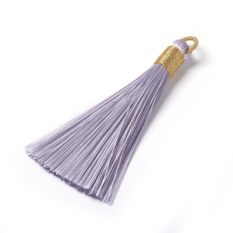 Střapec z nylonových šňůr je ideální doplněk pro vaše šperky. Je vyroben z kvalitních materiálů. Střapec je dlouhý přibližně 6,5 cm. Je opatřen zlatým očkem, které umožňuje snadné uchycení na náhrdelník nebo náušnice. Střapec je na konci ozdobně stažen nití ve zlaté barvě.