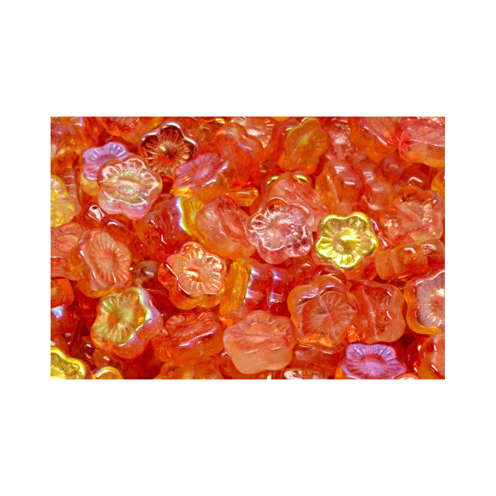 Oranžové skleněné krystaly s duhovým finišem propůjčují těmto českým mačkaným korálkům nezaměnitelný vzhled. Sunset Flower Beads 10 x 10 mm od výrobce Rutkovsky jsou ideální volbou pro jarní a letní bižuterii, kde vynikne jejich precizní tvar slunečnice a zářivé odlesky. Pro vytvoření něžného a elegantního designu doporučujeme kombinovat voskované perličky a kytičky v jemných romantických aranžmá. Tento hřejivý odstín krásně ladí s šedou barvou, zatímco stříbrná dodá šperku neutrální akcent a červený siam vytvoří energii plnou kontrastu.