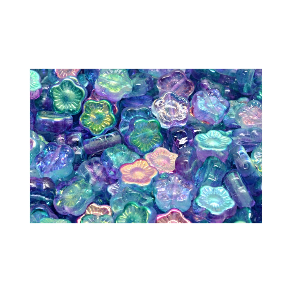 Svěží tóny mořské hladiny a jemné fialové odlesky se setkávají v unikátním tvaru, který vdechne vašim šperkům život. Sunset Flower Beads 10 x 10 mm od renomovaného výrobce Rutkovsky představují špičku v kategorii mačkaných skleněných korálků. Tento květ slunečnice vyniká precizním zpracováním a hloubkou barev, která se mění s každým dopadem světla na jeho detailně modelovaný povrch.