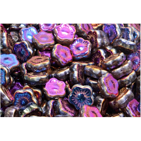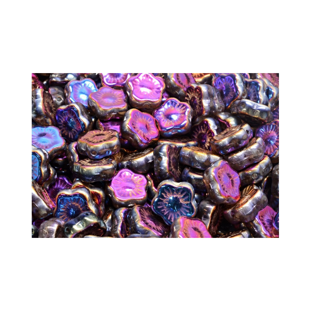 Fialová a duhové odlesky povrchové úpravy Sliperit dělají z těchto mačkaných korálků ve tvaru květiny naprostý unikát pro každou kreativní duši. Tyto české skleněné korálky od renomovaného výrobce Rutkovsky o rozměru 10 x 10 mm přinášejí do světa bižuterie precizní zpracování a vizuální hloubku, kterou oceníte zejména při tvorbě náušnic nebo jako centrální prvek v náramcích. Povrch korálků vykazuje silný metalický lesk, který mění barvu podle úhlu dopadu světla.
