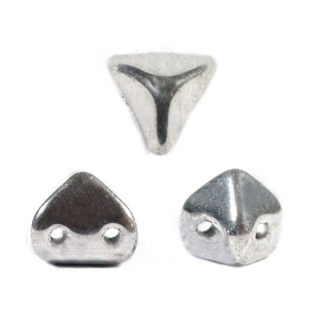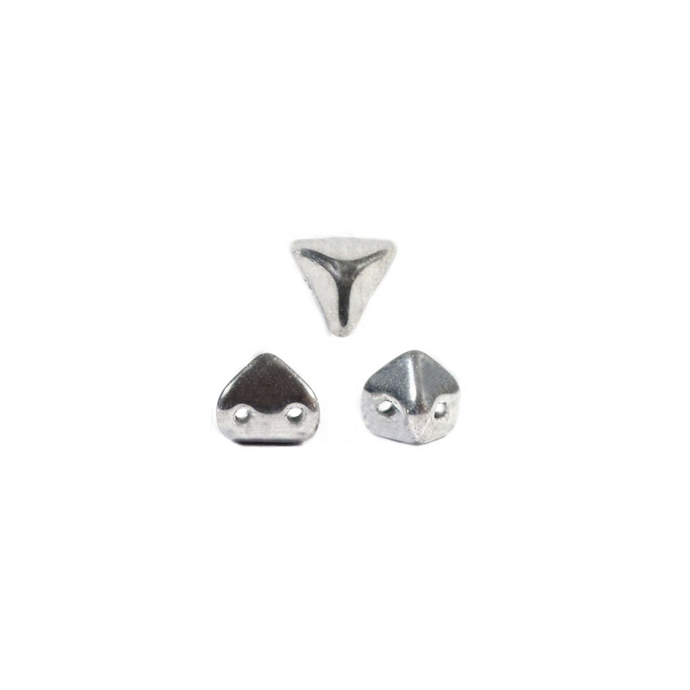 Stříbrné korálky Super-Kheops® par Puca® o rozměru 6 x 6 mm představují precizní geometrický prvek vyrobený z českého mačkaného skla. Tento unikátní tvar trojbokého jehlanu se dvěma paralelními otvory o průměru 0,8 mm zaručuje dokonalou stabilitu při šití a umožňuje přesné lícování s ostatními komponenty. Jako součást prestižní kolekce Les Perles par Puca® vynikají tyto korálky v barvě ARGENTEES/SILVER (kód 00030/27000) svou konzistentní kvalitou a hladkým povrchem, který minimalizuje tření při práci s nitěmi.