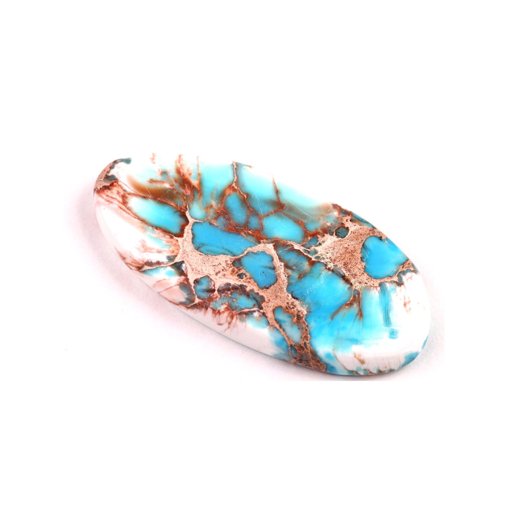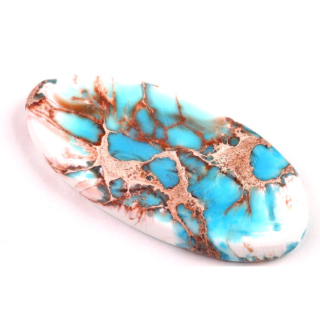 Kabošon Rekonstruovaný Tyrkys (Tyrkys, měď, pryskyřice) Velikost cca 39x21x4 mm Cena za 1 ks...