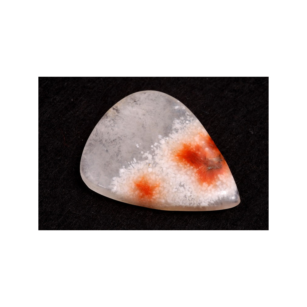 Thomsonite je nádherný kámen se zářivými červenými a oranžovými inkluzemi na jemném bílém a šedém podkladu. Tento vzácný minerál z rodiny zeolitů je oblíbený pro své jedinečné vzory a barevné kontrasty, díky čemuž je ideální pro šperkařské i dekorativní projekty.