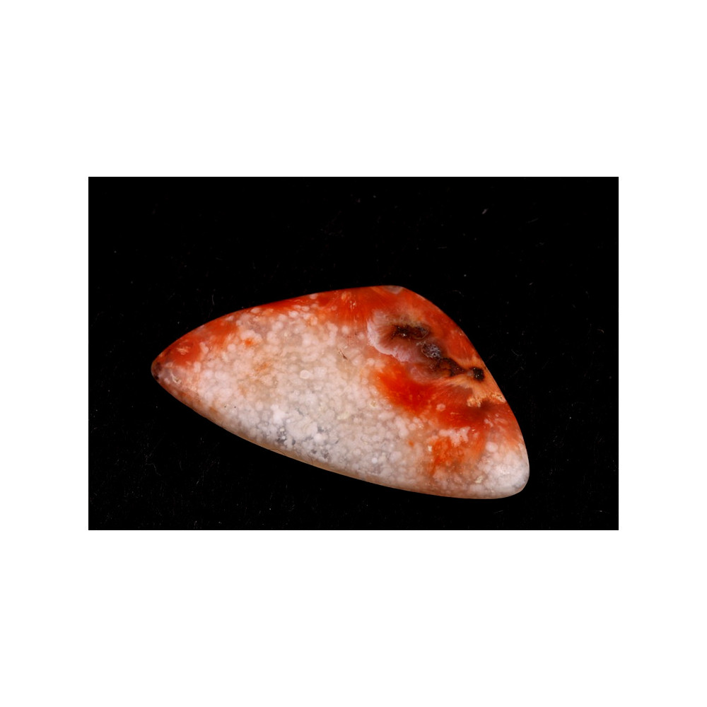 Thomsonite je nádherný kámen se zářivými červenými a oranžovými inkluzemi na jemném bílém a šedém podkladu. Tento vzácný minerál z rodiny zeolitů je oblíbený pro své jedinečné vzory a barevné kontrasty, díky čemuž je ideální pro šperkařské i dekorativní projekty.