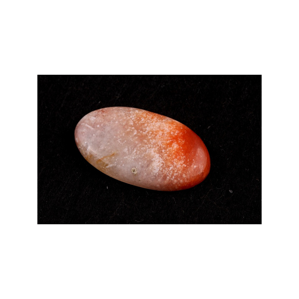 Thomsonite je nádherný kámen se zářivými červenými a oranžovými inkluzemi na jemném bílém a šedém podkladu. Tento vzácný minerál z rodiny zeolitů je oblíbený pro své jedinečné vzory a barevné kontrasty, díky čemuž je ideální pro šperkařské i dekorativní projekty.
