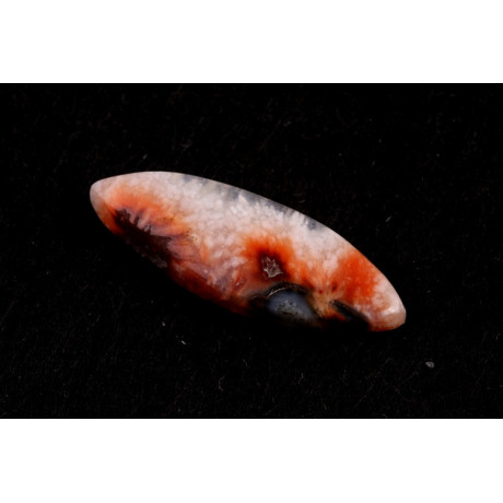 Thomsonite je nádherný kámen se zářivými červenými a oranžovými inkluzemi na jemném bílém a šedém podkladu. Tento vzácný minerál z rodiny zeolitů je oblíbený pro své jedinečné vzory a barevné kontrasty, díky čemuž je ideální pro šperkařské i dekorativní projekty.