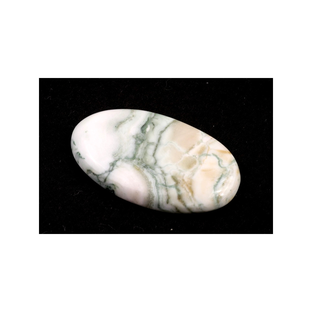 Kabošon z přírodního kamene Timberite Jasper je nádherný přírodní klenot, který přitahuje svými jemnými tóny smetanové, béžové a zelené s přirozenými liniemi připomínajícími krajinu nebo strukturu dřeva. Timberite Jasper je oblíbený pro svůj uklidňující vzhled a zemité odstíny, které vnášejí do šperků harmonii a klid. Tento kámen je ideální volbou pro ty, kdo hledají jemné, ale zároveň přírodní doplňky s elegantním nádechem.