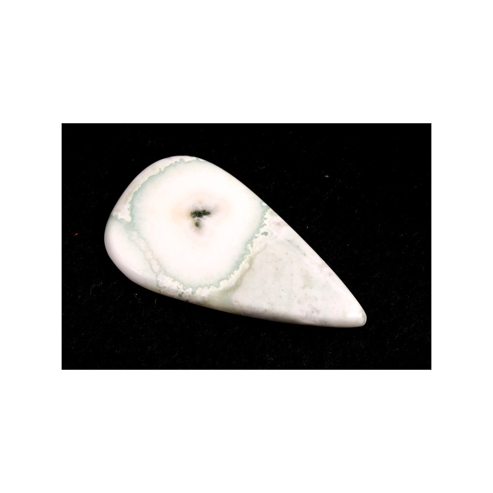 Tento kabošon lze krásně obšít skleněnými korálky, čímž se zdůrazní jeho přírodní linie, nebo jej připevnit na filc jako základ pro korálkovou výšivku. Může být také obdrátkován mědí či mosazí pro elegantní zakončení nebo obcínován stříbrným kovem, aby jeho přirozené barvy ještě více vynikly.