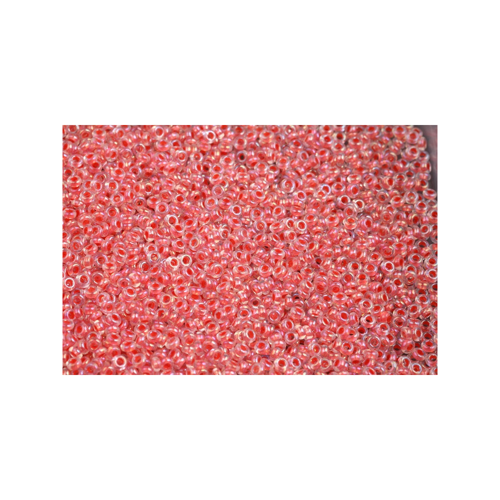 Broskvový tón s jemným odleskem Inside-Color Rainbow Crystal/Salmon-Lined okamžitě upoutá pozornost každé autorky originálních doplňků. Tyto japonské korálky TOHO Demi Round ve velikosti 11/0 představují vrchol preciznosti, kterou nabízí tradiční sklářská výroba v Japonsku. Jejich specifický zploštělý tvar dodává výsledným designům modernější a štíhlejší vzhled než běžný kulatý rokajl.