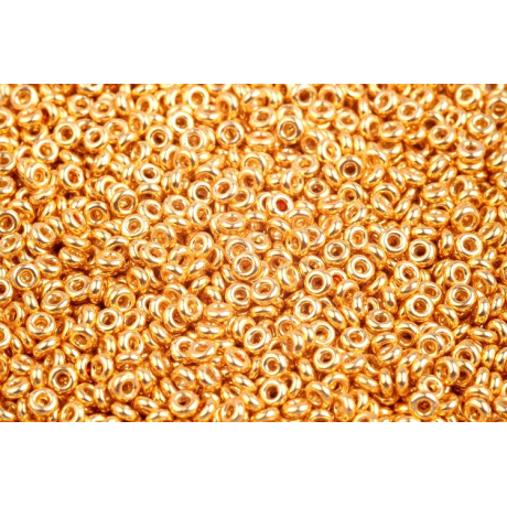 Zlatý odlesk a precizní japonské zpracování se snoubí v těchto korálcích s povrchovou úpravou PermaFinish - Galvanized Starlight. Tento speciální finiš zaručuje vysokou odolnost barvy proti otěru a vnějším vlivům, což je výsledek desetiletí inovací v japonských dílnách TOHO. Každý jednotlivý skleněný korálek prochází přísnou kontrolou kvality, aby byla zajištěna absolutní uniformita tvaru a rozměrů, která je pro tuto značku typická již od roku 1950.