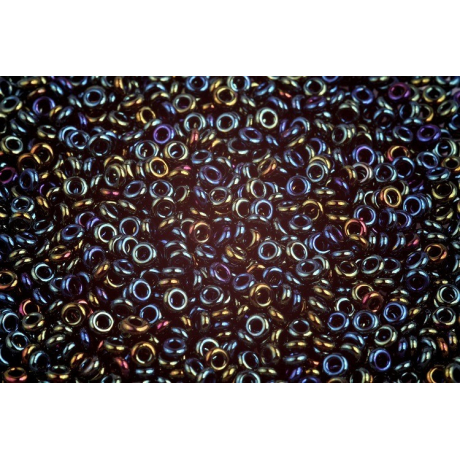 Fascinující povrchová úprava Metallic Iris - Green/Brown pod kódem 84 mění barvu podle úhlu dopadu světla od temně zelené až po bronzově hnědou s fialovými odlesky. Tento metalický iris finiš dodává bižuterii luxusní, téměř organický vzhled, který připomíná krovky vzácných brouků. Tato barva se výborně kombinuje s ostatními typy TOHO Round nebo Treasure pro vytvoření harmonických barevných přechodů.