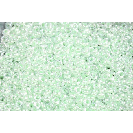 Mentolový náramek s jemnou texturou a moderním vzhledem vytvoříte snadno díky unikátnímu zploštělému tvaru japonských korálků TOHO Demi Round 8/0. Tyto skleněné kroužky v odstínu Inside-Color Crystal/Mint-Lined (kód barvy 1065) přinášejí do světa bižuterie nový rozměr, kdy jejich nízký profil umožňuje vrstvení a precizní detailní práci, které s klasickým kulatým rokajlem nedosáhnete. Průhledné sklo s vnitřním barevným průtahem vytváří hloubku a jemný lesk, který rozzáří každý autorský šperk.
