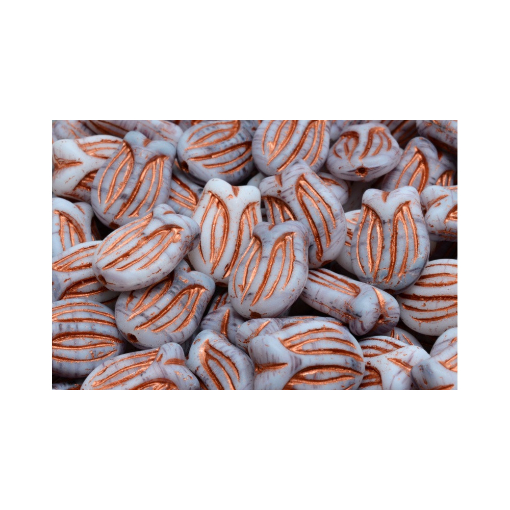 Bell Flower Cup Beads 7x5 - Květinový zvonek WHITE ALABASTER BLUE LUSTER 02010/14464 Velikost: 7...