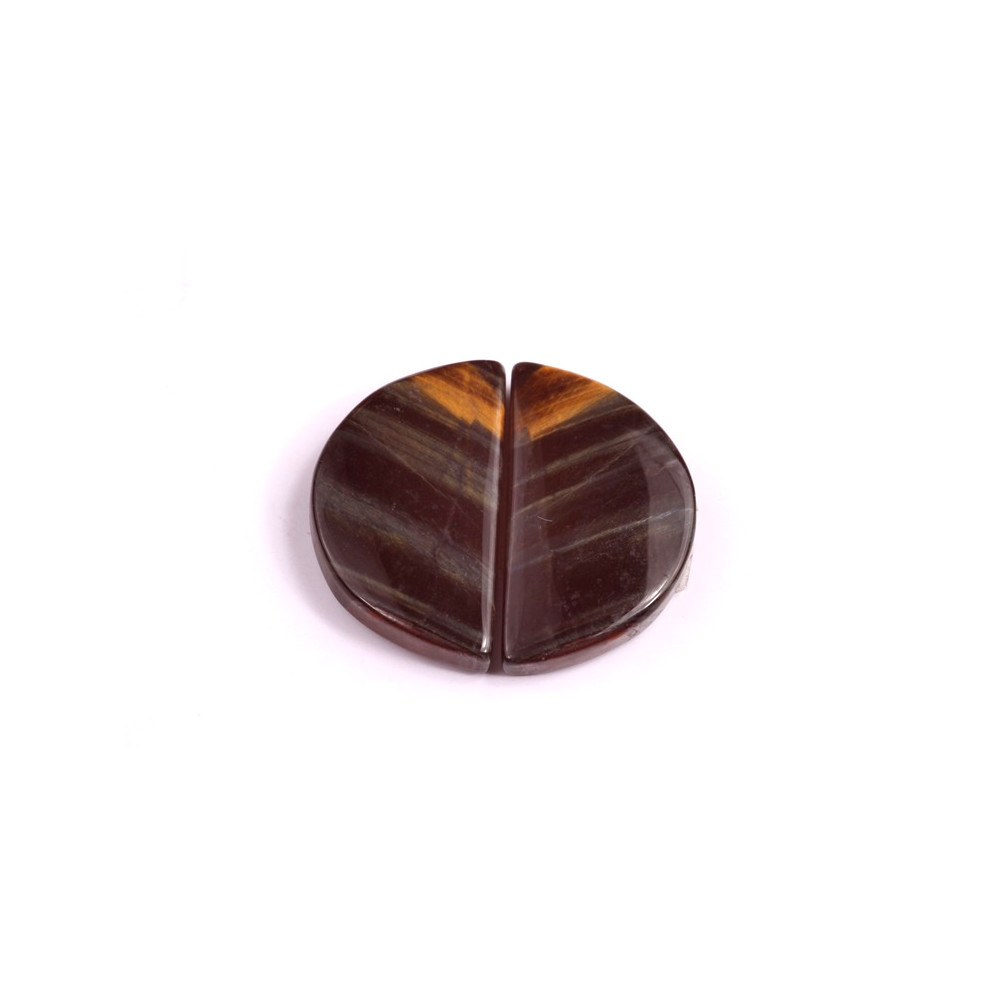 Párové kabošony z přírodního kamene Tygří Oko vnášejí do šperků silný a zářivý vzhled díky svým charakteristickým zlatavě hnědým odstínům s lesklými pruhy, které připomínají oči šelmy. Každý pár kabošonů je vytvořen z jednoho kusu kamene, aby se perfektně doplňoval a vytvářel harmonický pár – ideální pro výrobu náušnic, které zaujmou na první pohled. Tygří oko je známé jako kámen ochrany, síly a odvahy, což z něj činí ideální doplněk pro sebevědomé a elegantní šperky.