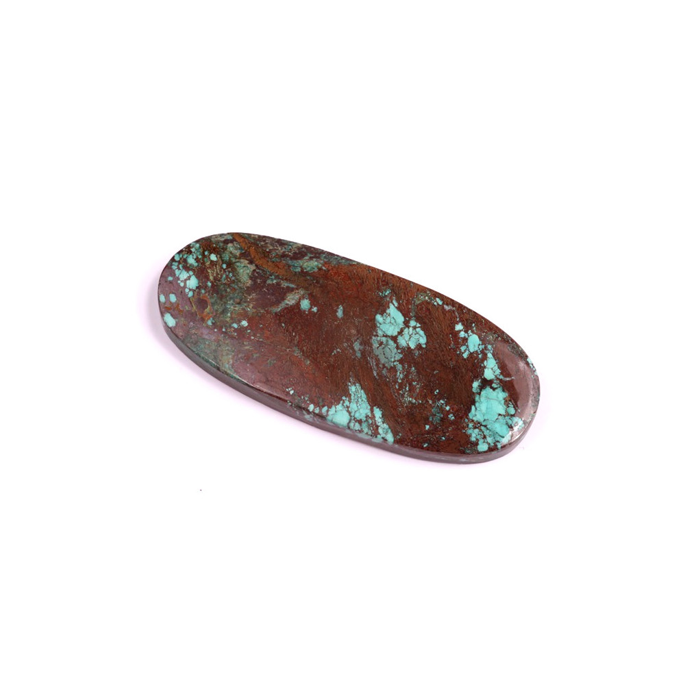 Kabošon z přírodního kamene Tyrkys Hubei je fascinujícím kouskem s bohatými odstíny modrozelené a červenohnědé, které dodávají každému kabošonu jedinečný, přírodní vzhled. Tento typ tyrkysu pochází z čínské provincie Hubei, kde se těží pro svou charakteristickou síťovou strukturu a syté barvy. Tyrkys Hubei je ceněn mezi milovníky minerálů a šperkaři, neboť symbolizuje ochranu, klid a duchovní vyrovnanost.