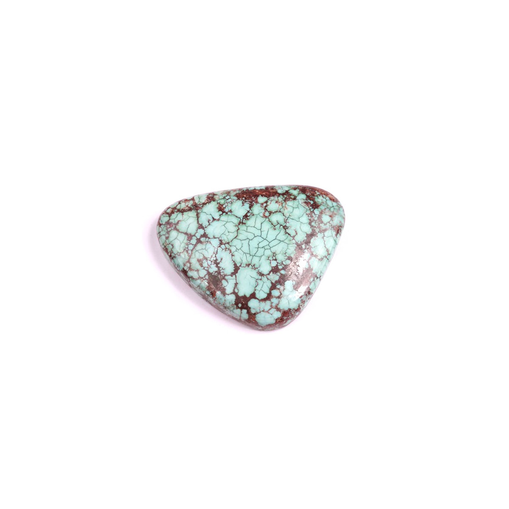 Kabošon z přírodního kamene Tyrkys Hubei je fascinujícím kouskem s bohatými odstíny modrozelené a červenohnědé, které dodávají každému kabošonu jedinečný, přírodní vzhled. Tento typ tyrkysu pochází z čínské provincie Hubei, kde se těží pro svou charakteristickou síťovou strukturu a syté barvy. Tyrkys Hubei je ceněn mezi milovníky minerálů a šperkaři, neboť symbolizuje ochranu, klid a duchovní vyrovnanost.