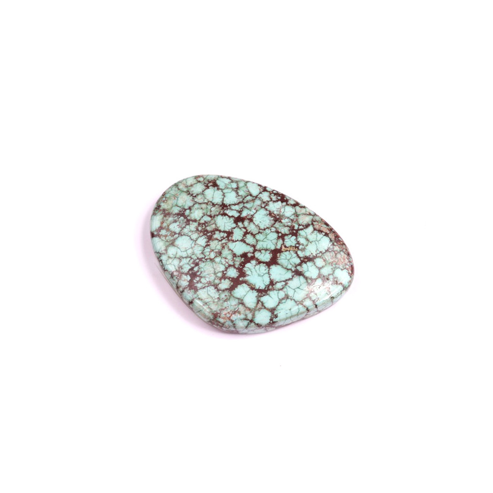 Kabošon z přírodního kamene Tyrkys Hubei je fascinujícím kouskem s bohatými odstíny modrozelené a červenohnědé, které dodávají každému kabošonu jedinečný, přírodní vzhled. Tento typ tyrkysu pochází z čínské provincie Hubei, kde se těží pro svou charakteristickou síťovou strukturu a syté barvy. Tyrkys Hubei je ceněn mezi milovníky minerálů a šperkaři, neboť symbolizuje ochranu, klid a duchovní vyrovnanost.