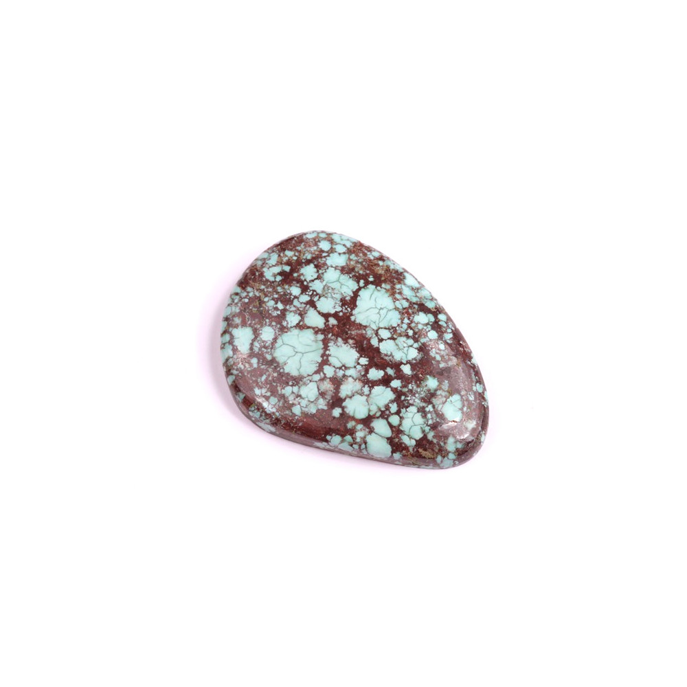 Kabošon z přírodního kamene Tyrkys Hubei je fascinujícím kouskem s bohatými odstíny modrozelené a červenohnědé, které dodávají každému kabošonu jedinečný, přírodní vzhled. Tento typ tyrkysu pochází z čínské provincie Hubei, kde se těží pro svou charakteristickou síťovou strukturu a syté barvy. Tyrkys Hubei je ceněn mezi milovníky minerálů a šperkaři, neboť symbolizuje ochranu, klid a duchovní vyrovnanost.