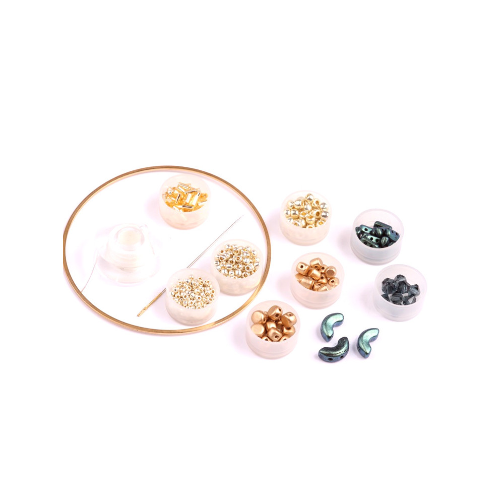 České skleněné jazýčky 3 x 11 mm Velikost průtahu: 0,7 mm Balení: 35 ks Barva: zlatá Materiál:...