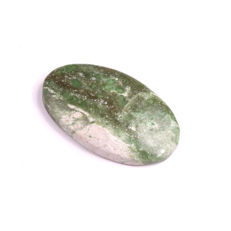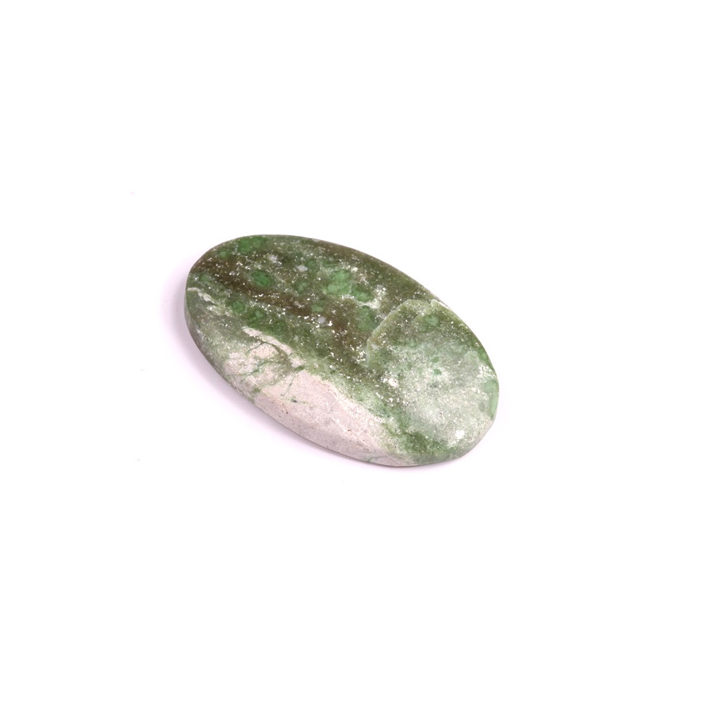 Kabošon z přírodního kamene Variscite představuje harmonickou kombinaci jemných zelených odstínů, které přecházejí do světlých a přírodních tónů. Tento minerál, ceněný pro svou klidnou energii a unikátní vzhled, patří mezi oblíbené volby šperkařů i sběratelů. Variscite se vyznačuje hladkou a lesklou povrchovou úpravou, která krásně zvýrazňuje jeho přirozené vzory a barevné nuance.