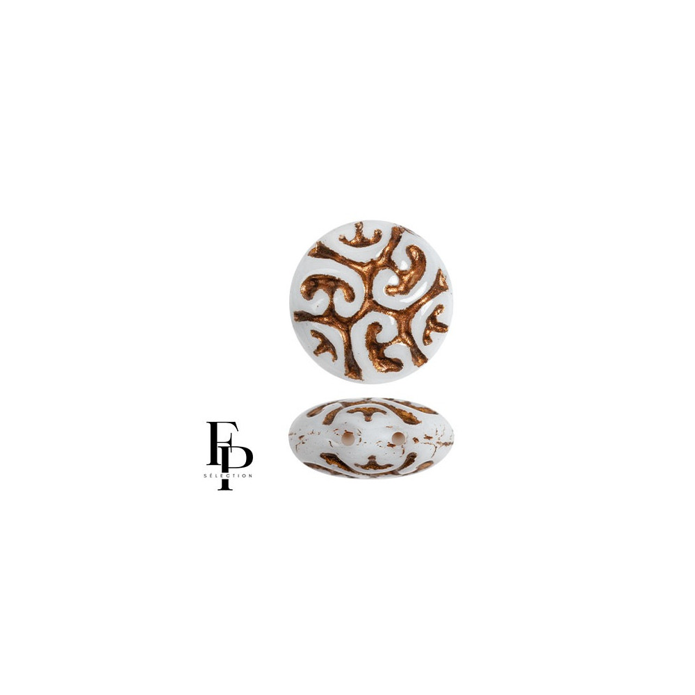 Představte si medailon, který v sobě nese nádech historie a elegance starých časů a stane se srdcem vašeho autorského díla. Tyto skleněné dvoudírkové korálky Vintage Cabochons FP Selection® č. 7 zaujmou na první pohled svou bílou barvou, kterou zdobí propracovaný hnědý dekor s metalickými odlesky. Díky velikosti 13 x 13 mm a preciznímu provedení jsou ideální pro náročné techniky beadweavingu, kde se skvěle doplňují s klasickými korálky Preciosa, které podtrhnou jejich vintage charakter.