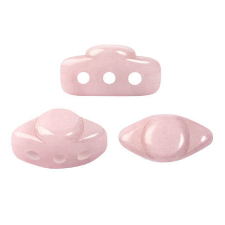 Volos® par Puca® v barevném provedení opaque light rose ceramic look (kód 03000/14494) jsou specifické svým jemným růžovým odstínem a povrchem připomínajícím luxusní keramiku. Tyto korálky o velikosti 4x8 mm disponují třemi otvory, což otevírá zcela nové dimenze v konstrukci šperku a umožňuje vytvářet plynulé přechody a složité geometrické vzory.