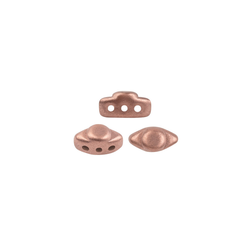 Měděné odlesky zapadajícího slunce se zrcadlí v každém detailu skleněných mačkaných korálků Volos® par Puca®, které vnesou do vašich projektů nádech francouzského luxusu. Tento unikátní tvar se třemi otvory o velikosti 4x8 mm v odstínu Copper Gold Mat (00030/01780) byl navržen tak, aby precizně zapadal do geometrických schémat vedle dalších prvků, jako jsou Amos® par Puca® nebo Delos® par Puca®. Díky české sklářské tradici a inovativnímu designu Annick Puca získáte materiál s matným metalickým povrchem, který je ideální pro tvorbu prostorových šperků, kde záleží na každém milimetru a dokonalé symetrii.